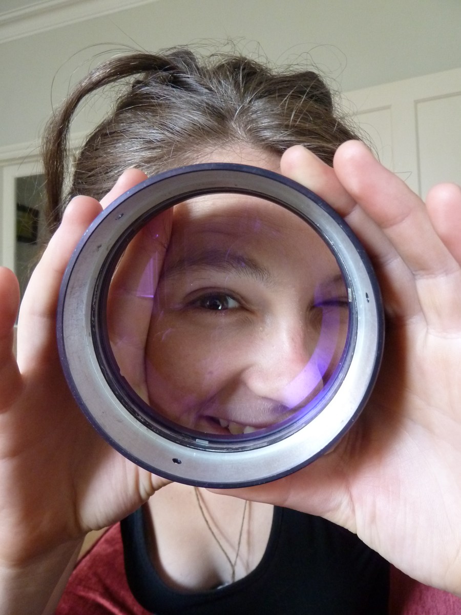 The 4” lens from a telescope. 100cm focal length. Our lens! 4” diameter, 100cm focal length, taken from a telescope Like Loading...